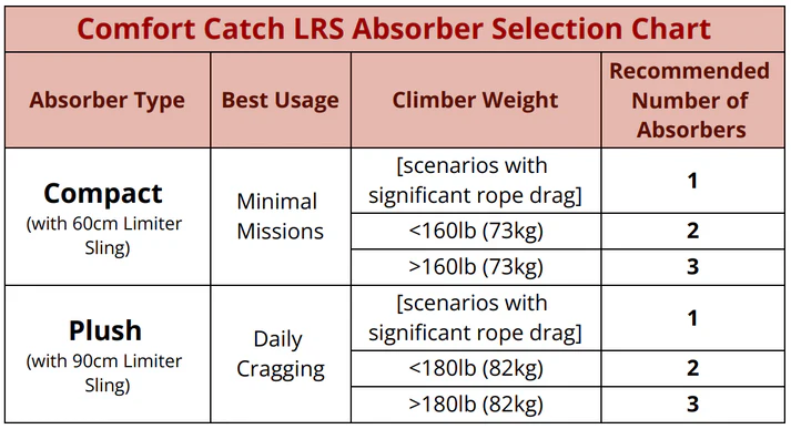 Do you expect to fall higher up with rope drag? Remove an absorber for a more comfortable catch.